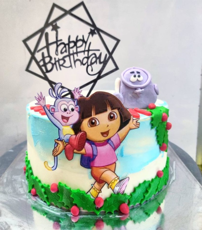 This seven-year-old Latina girl, followed by her talking purple backpack and anthropomorphic monkey friend named Boots, enjoys embarking on adventures linked to an activity she wants to indulge in or a place she wants to visit. Bake this cake for your little girl who loves travel and likes 'Dora the Explorer'.