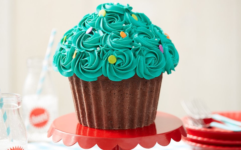 When it comes to desserts, bigger is usually better! This is particularly true of this Giant Cupcake Cake. Have some fun and make it yourself today.