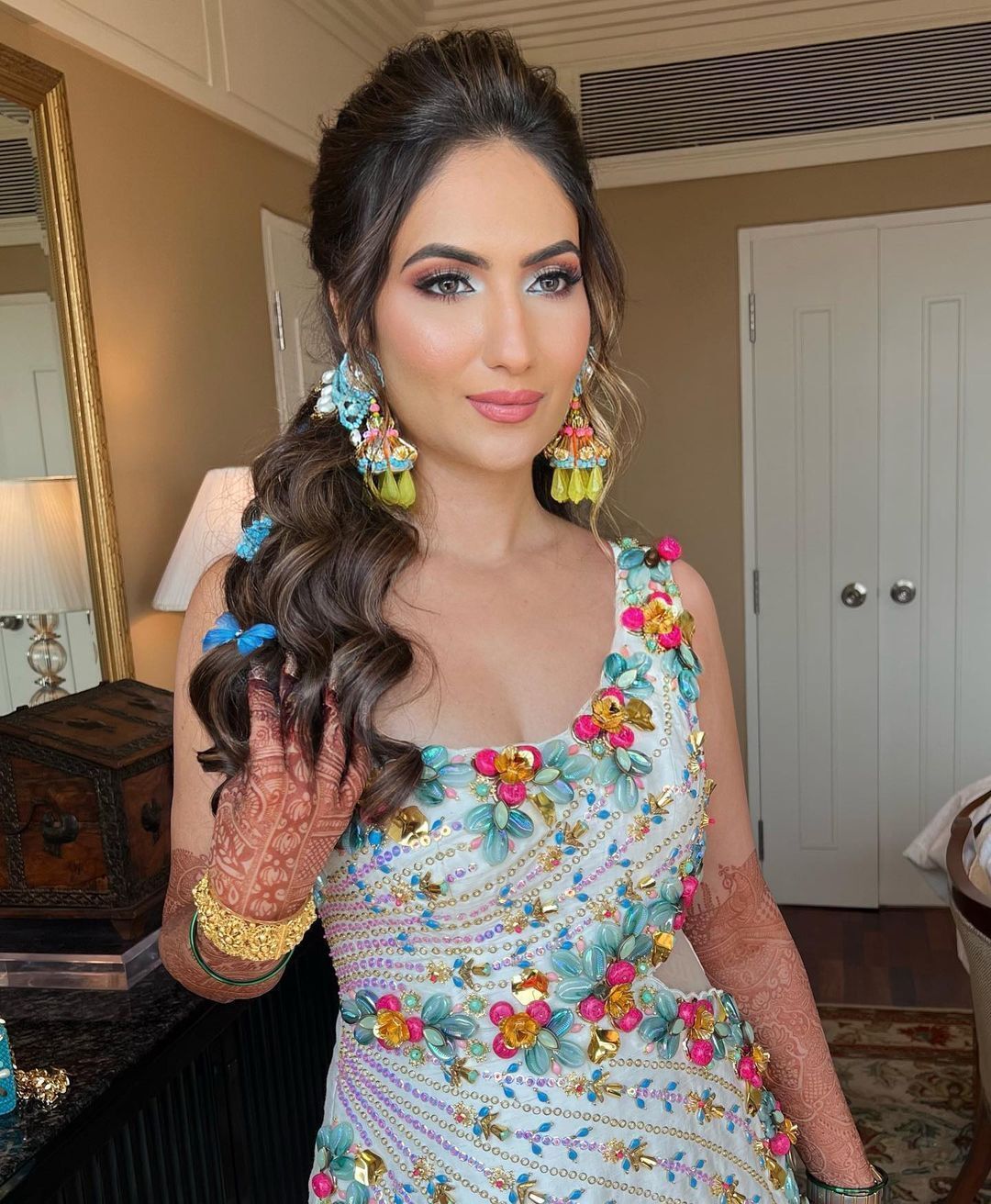 This would be perfect for a mehendi ceremony, a poolside gathering, or an enjoyable welcome luncheon. Bridesmaids eager to experiment with vibrant hues will find this look ideal!
