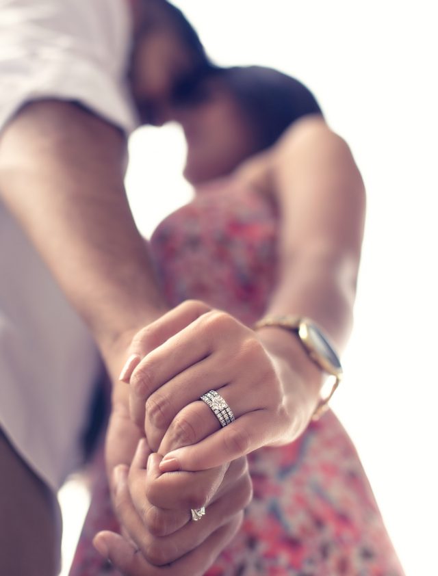 You can use your engagement rings as props and click innovate shots highlighting them to announce your engagement.