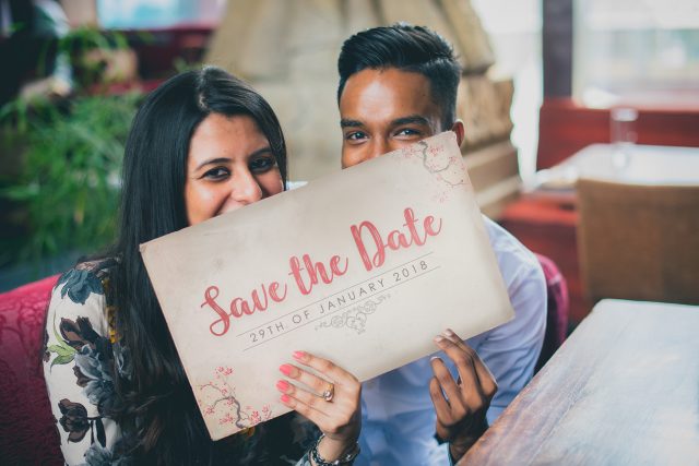 You can write your wedding date in an innovate manner and have a picture taken with it so that you can use the picture for your Save-The-Date invite.