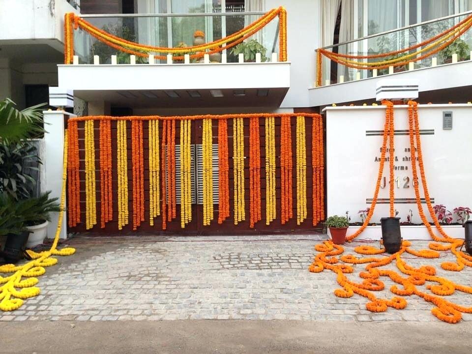 Decorate the staircase with lines of colourful flowers like marigold, roses, jasmine etc. Garden