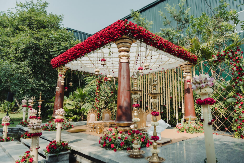 - Reuse décor across events: The stage décor from the engagement can be repurposed for mehendi or sangeet.
