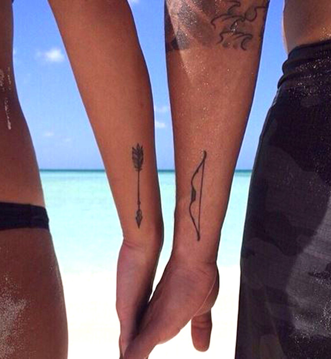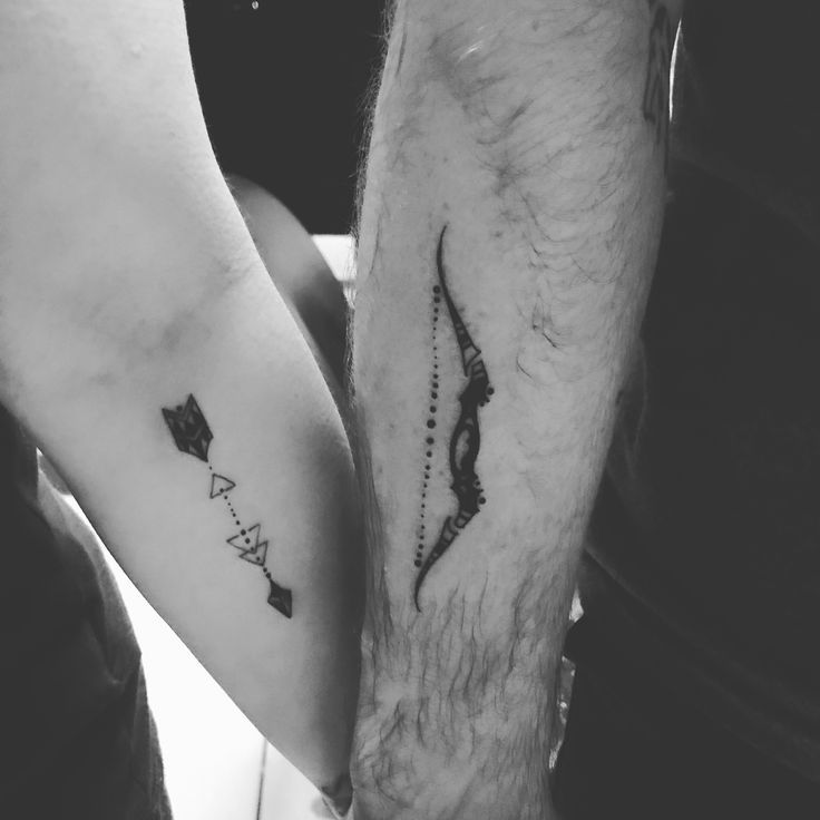Source: PinterestA bow and arrow is a well-known weapon. A bow and arrow can symbolize strength and power, or a sense of direction. This couple of tattoos idea highlights the fact the partners are indestructible together and that each of them has a vital role in the couple.