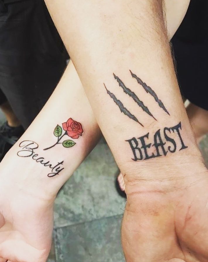 Source: PinterestLove can make you feel just like a child at heart! If both of you are big fans of Disney, then there's no better way to prove your endless love than with matching tattoos of Disney characters. Flaunt the magic and romance you have between each other with your favourite Disney couples!