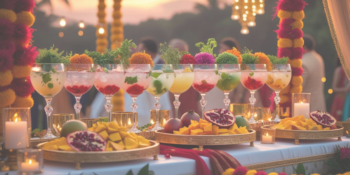 Serve light yet festive food that’s easy to eat during the mehendi application. Think of mini chaat counters, mocktail bars, or desserts like phirni and kulfi. A live food station can also elevate the experience.