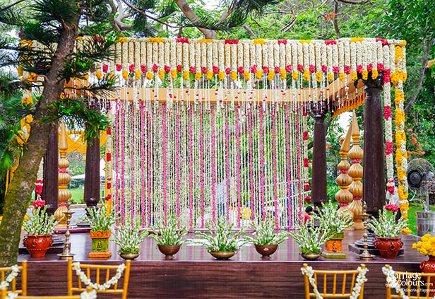 While mehendi decor is typically bright and colorful, intimate events can strike a balance between minimalism and vibrancy.