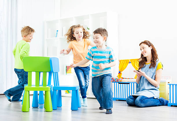 In the shape of a circle, arrange the chairs with the seats facing out. The total number of chairs should be one less than the number of children who will be playing. Play some music and have the kids run in a circle. When the music stops playing, each child must find a seat. The player who does not have a seat is out. Play until only one child is left. Make the game more fun by using as many of the following strategies as possible.