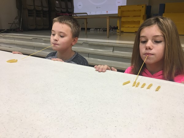 The kids are expected to pick up pieces of penne pasta with the spaghetti and place them one by one in the dish. The children must pick up the pasta with spaghetti in their mouth. They are not allowed to use their hands.By the end of two minutes, the player with the most penne pieces in their bowl has won.
