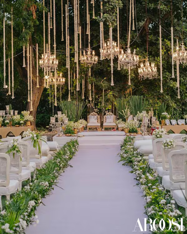 Mogra Garland Curtains: Frame the mandap with layers of mogra garlands that exude an ethereal fragrance as you take your vows.