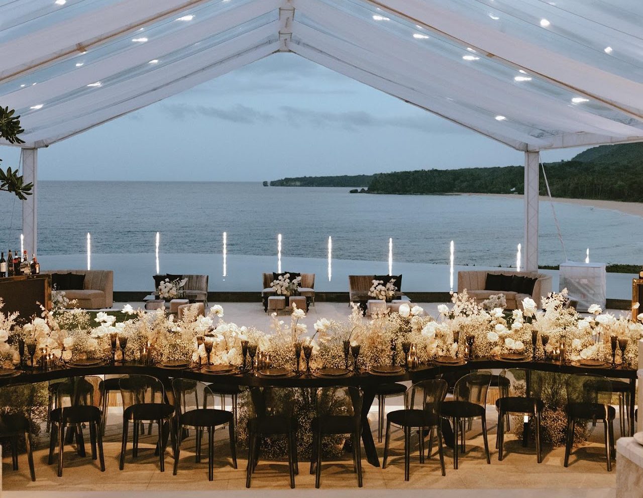 - Driftwood accents, fairy lights, and whimsical macramé hangings can create a boho bliss atmosphere by the beach. Flowy drapes and tropical blooms add to the ambiance, making it a picturesque setting.