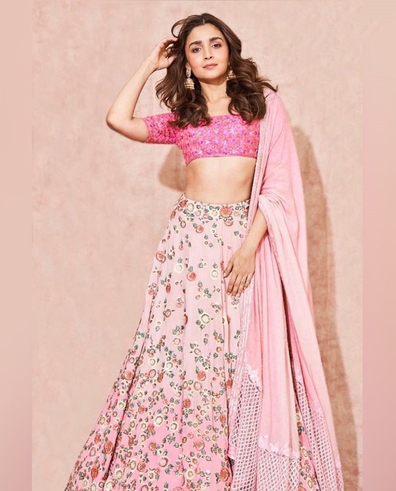 Source: PinterestAlia Bhatt donned a gorgeous pink lehenga paired with a shimmery sequin hot pink blouse and a pretty powder pink dupatta, for the pre-wedding celebration of Akash Ambani and Shloka Mehta's wedding in Swiss Alps. And, we still cannot stop drooling over it. This pink lehenga choli is one hundred percent bridesmaid-goals!