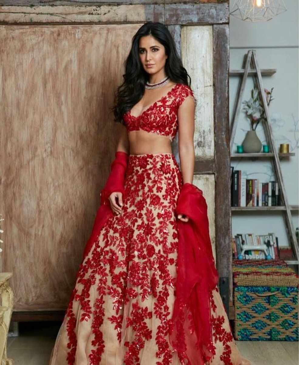 Source: PinterestPerfectly paired with bold yet minimalistic jewellery, Katrina Kaif was a head-turner in her beige and red lehenga. She donned it for Sonam Kapoor Ahuja and Anand Ahuja’s wedding reception in 2018. It’s been two years already, but we can’t seem to get over this outfit anytime soon. A lehenga like this can never seem out of place in Indian weddings.