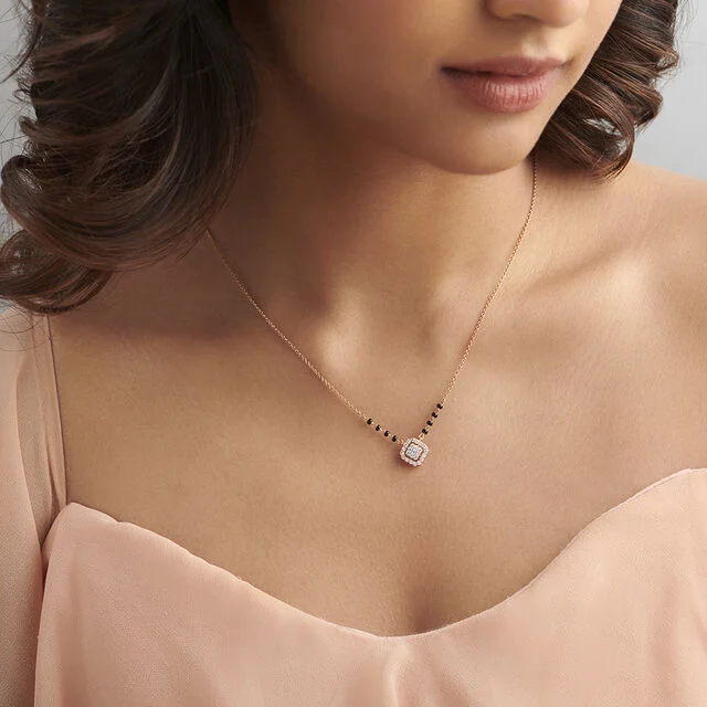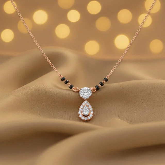 Rose gold mangalsutras often feature delicate pendants with diamond accents, making them a stylish choice for women who enjoy modern jewellery trends.