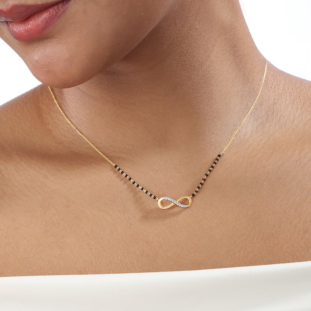 Infinity mangalsutras often include small diamond details or sleek gold outlines, creating a modern and romantic aesthetic.