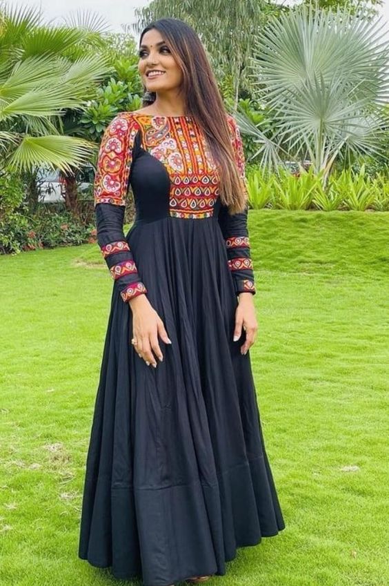If you're running late, a Navratri Kurti is a quick and classy solution. With vibrant colors, intricate work, and embroideries, this Garba outfit can be paired with denim jeans, palazzos, or even a long skirt for a perfect festive look.