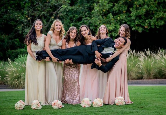 Now this one is really adorable! Make your bridesmaids strike a pose with the man himself! This holds a special significance if the bridal group comprises members of the bridegroom’s family too, for example, the sisters.