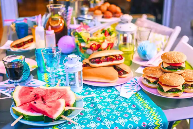 Pool parties and heavy meals just don’t mix. Rich, heavy food can leave guests feeling sluggish, which isn’t exactly ideal for a day of swimming and sunshine. Lighter, hydrating fare, think juicy fruits, crisp veggies, and cool beverages, will keep everyone energized and ready for more poolside fun.