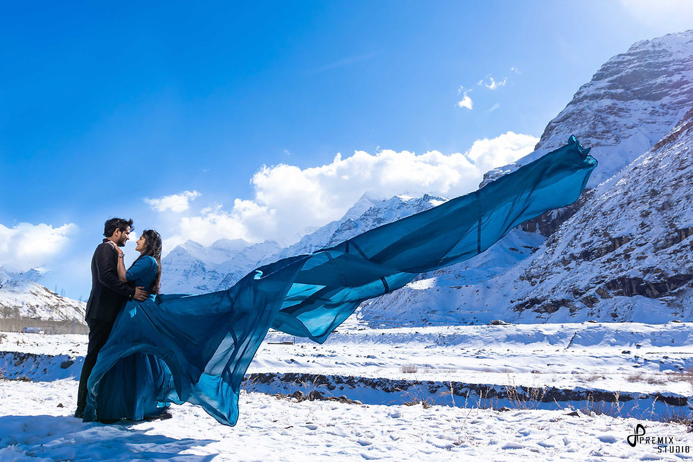 For mountain lovers, Shimla and Manali are enchanting choices. Snow-capped peaks, pine forests, and charming cottages make for romantic, fairy-tale-like frames. Perfect for couples who want cozy winter vibes in their pre-wedding photos.