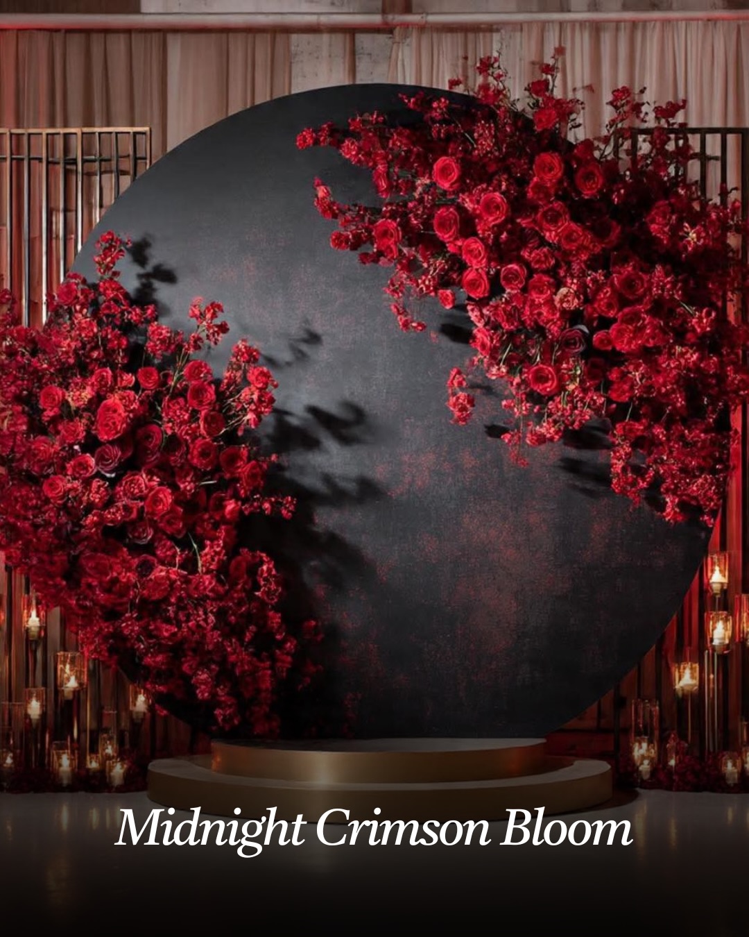 Midnight Crimson Bloom is perfect for evening receptions or elegant indoor weddings.