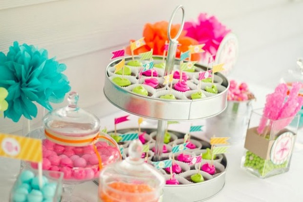 - Healthy and mouth-watering food with refreshing drinks: Limit high-fat foods and instead try to offer plenty of breadsticks, fruits and vegetables with salsa dip, mini muffins, or pizza. Kids love cookies. Try to make cookies in different shapes to make them look more tempting and appealing. Use multi-tier serving dishes to give that chic touch. Offer plenty of finger foods that are easy to pick and eat with refreshing drinks. And don’t forget to offer ice-creams for desserts!