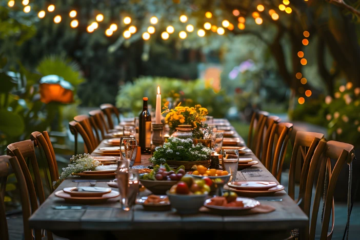 3. What is the most popular dinner party theme? Themes like black & gold, boho luxe, and garden-inspired setups are currently very popular.