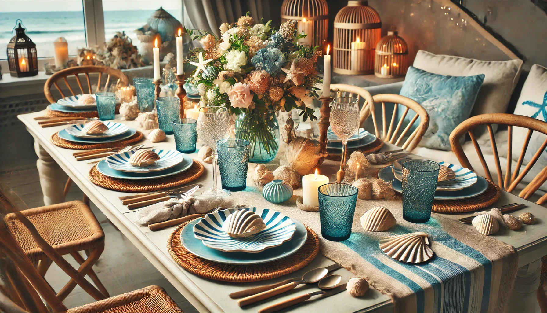Bring the charm of coastal Europe to your table with a Mediterranean-inspired dinner party. Use blue and white ceramics, olive branches, lemons, and rustic wooden elements to create a relaxed yet elegant setting.