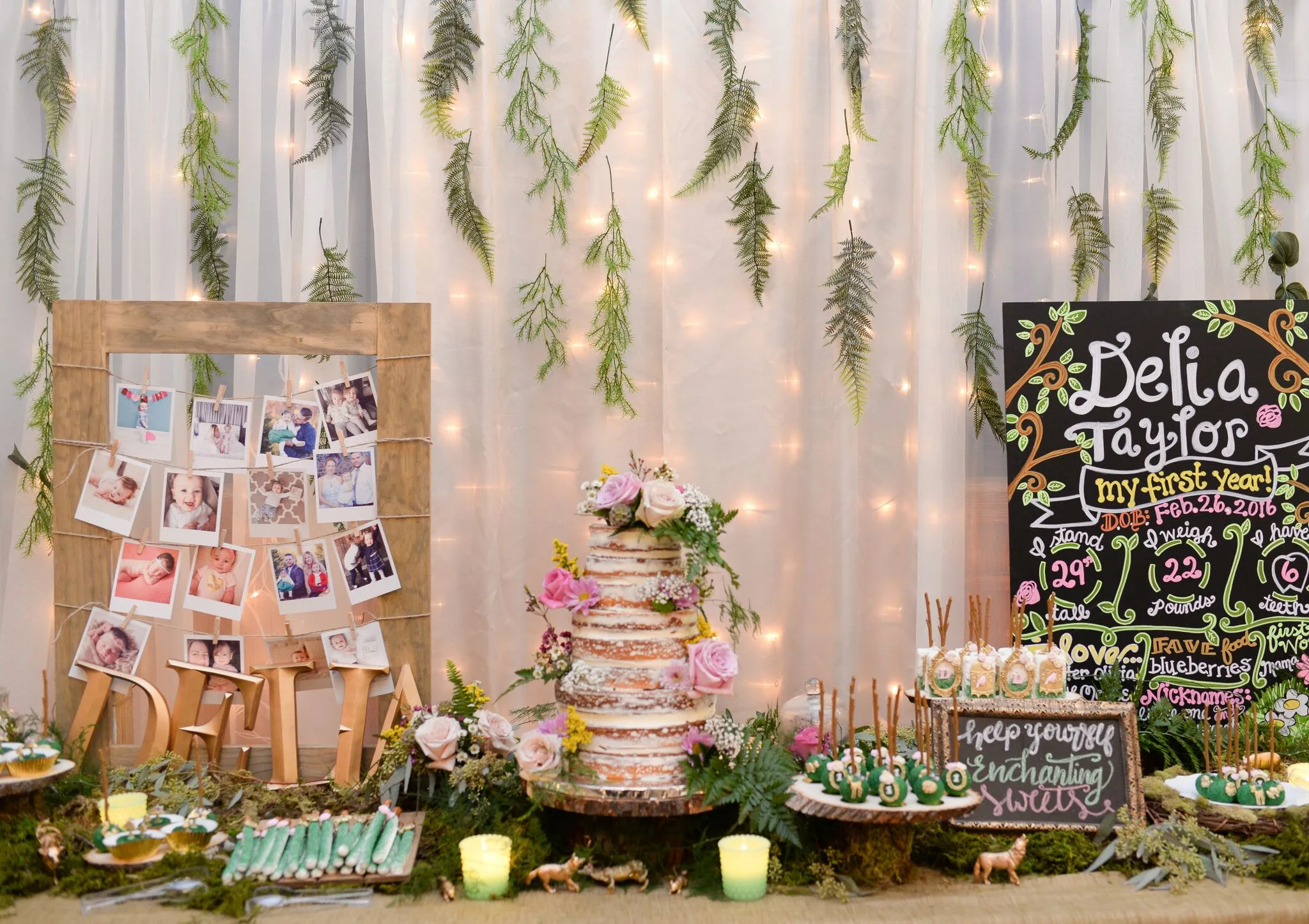 - Decor: Use a mix of real and artificial greenery to create a dense, forest-like environment. Incorporate elements like moss, tree stumps, and branches. Fairy lights and lanterns hanging from above add a whimsical touch.