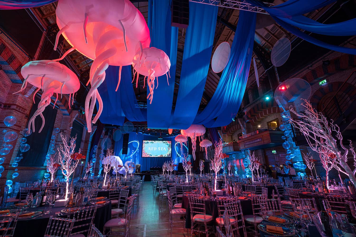 - Decor: Use shades of blue, aqua, and green to mimic the ocean. Decorate with seashells, starfish, and coral centerpieces. Jellyfish lanterns and fish-shaped balloons can add a playful element.