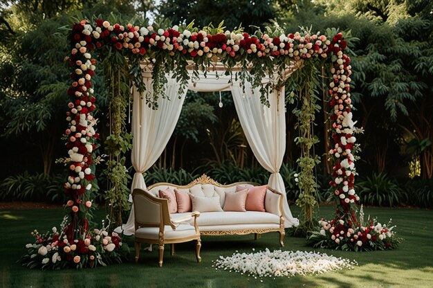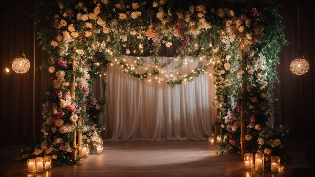 Florals symbolize freshness, romance, and timeless beauty. From marigolds and roses to exotic orchids and hydrangeas, you can choose flowers that match your theme or tradition. This setup is ideal for day weddings or mehendi functions and creates a dreamy, Instagram-worthy corner.