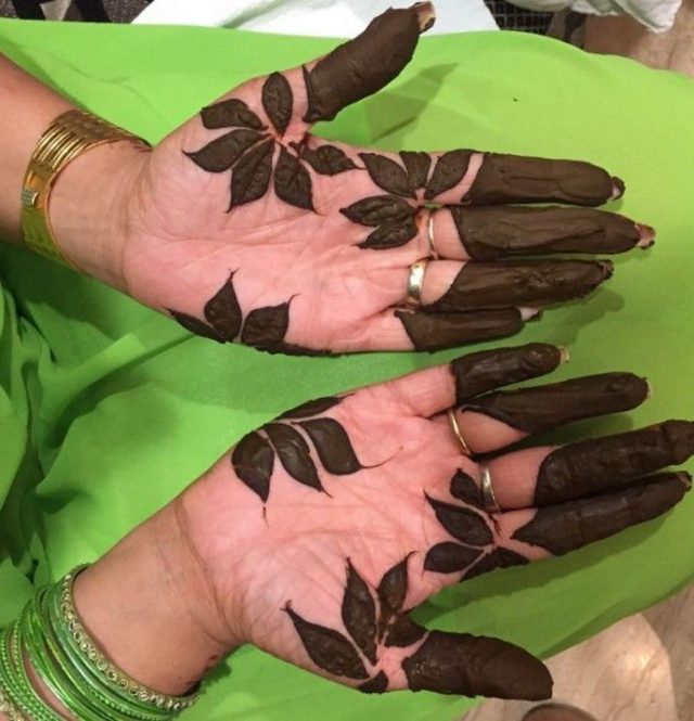 This one is simple and elegant since it incorporates typical mehndi features like leaves and blossoms.