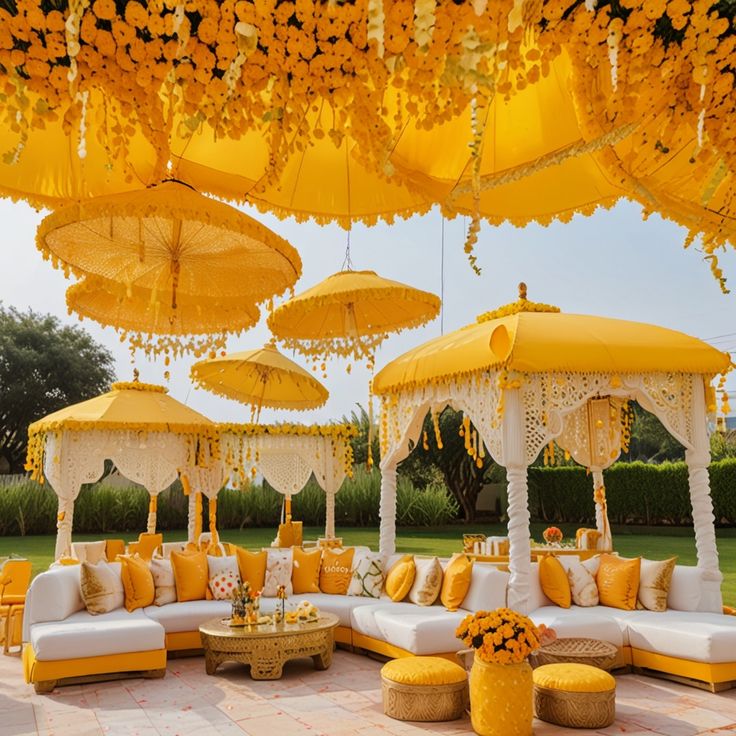 Marigold flowers have been a quintessential part of Indian weddings for generations. A Marigold Magic theme adds a traditional yet visually stunning element to your Haldi ceremony. The bright orange and yellow hues of marigolds symbolize prosperity and happiness, making them the perfect choice for this auspicious occasion.