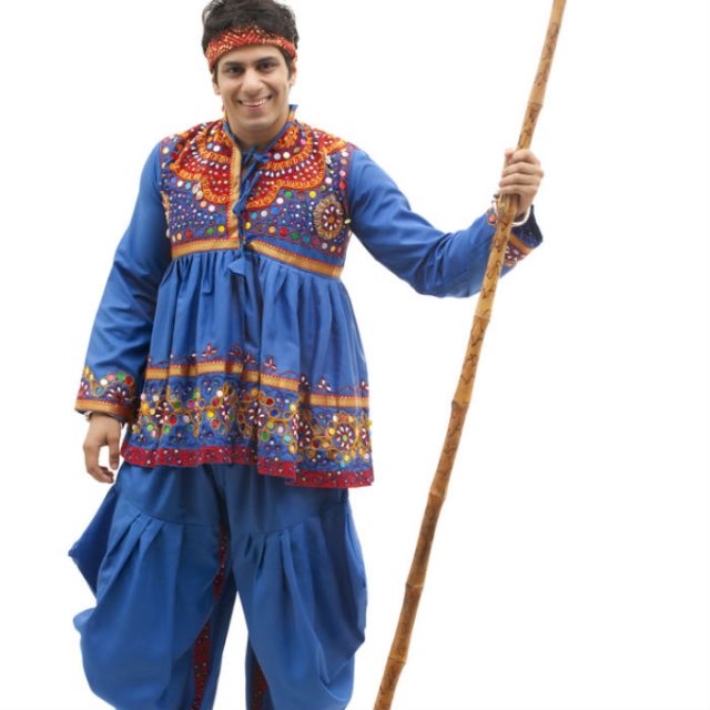 Just as women, men are also equally excited to deck up in the traditional attire for the evening. They like participate in the dance while wearing the short traditional silk kurta. The bottom of the short kurta has a flair. The shirt generally carries mirrors and embroidery work on it, same like the ghagra choli. Men pair it up with the loose pyjamas which are comfortable and roomy. Men put it on beneath their kurta. The clothes are typically vibrant, with red being the dominant colour.