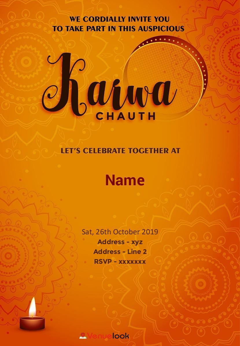 Karwachauth is a festival which is celebrated traditionally by married women for the well being of their husband. This festival falls on the fourth day of Krishna Paksha in the Hindu month of Kartik. Earlier, only women used to keep the fast, but now it is observed that some men also keep Karwachauth fast for their wives. If you are planning to celebrate this year's Karwachauth with your loved ones then invite them to be a part of your celebration. Create Karwachauth e-invites for free and send them to your loved ones through WhatsApp or email.Create your Trendy Karwachauth E-Invite here >>