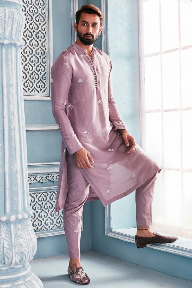 Try a knee-length achkan if you want to go for a regal look. You cannot go wrong with a dark-colored solid achkan paired with churidar pants. The look is classy and timeless. You can also add a pearl necklace or brooch to your attire to up the glam quotient.
