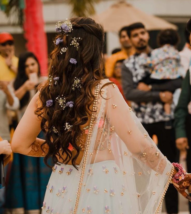 Soft, voluminous curls remain a timeless favourite for the bride tribe. This hairstyle works beautifully across all wedding functions, from haldi to reception. The key trend now is keeping the curls loose and natural rather than tightly defined. A middle part gives a chic, modern vibe, while a deep side part adds drama and elegance. This hairstyle pairs exceptionally well with lehengas, sarees, and even fusion outfits, making it a versatile go-to choice.