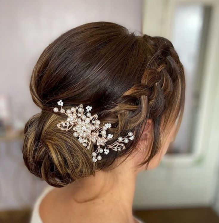 Low Bun with Floral or Pearl Accents