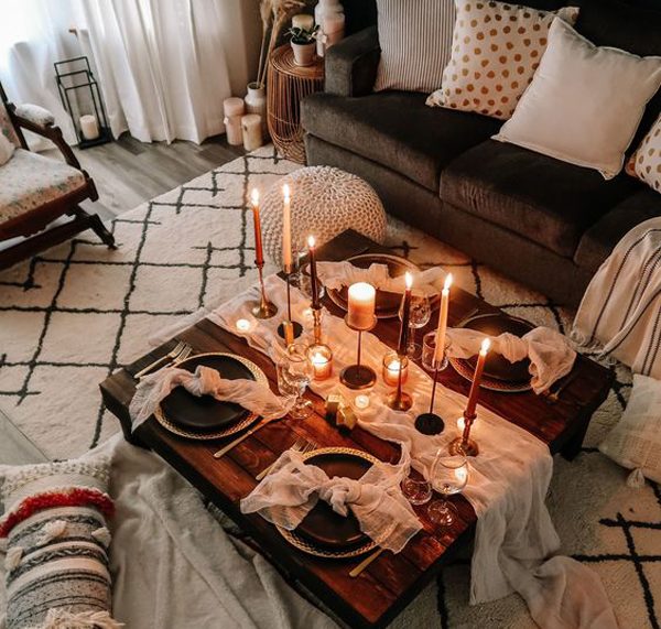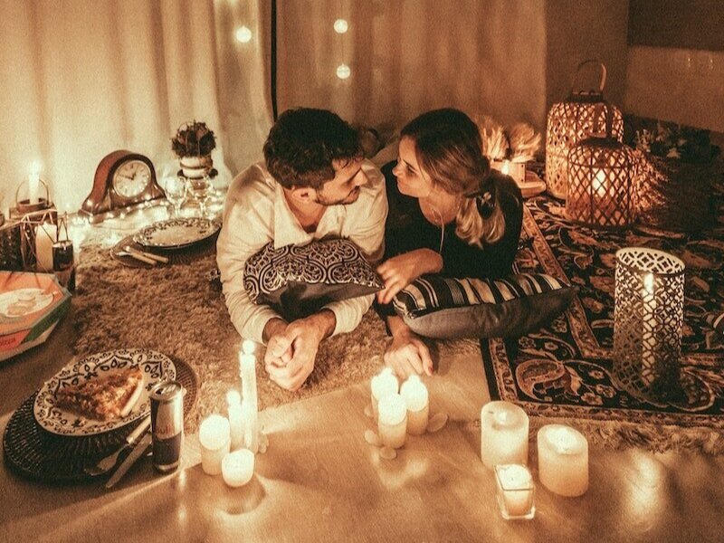 Celebrate your anniversary with a movie night that goes beyond the ordinary! Transform your living room into a cozy cinema by setting up a projector or large screen, and create a comfortable viewing area with plush pillows and soft blankets. To add a romantic touch, light some candles and dim the lights for an intimate atmosphere.