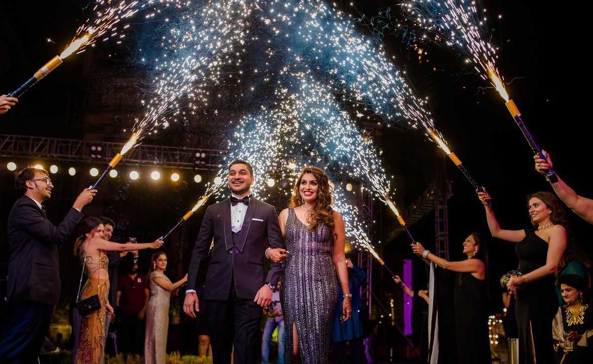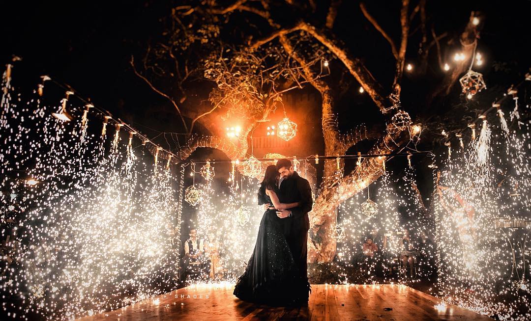 Cold fireworks during couple’s dance.