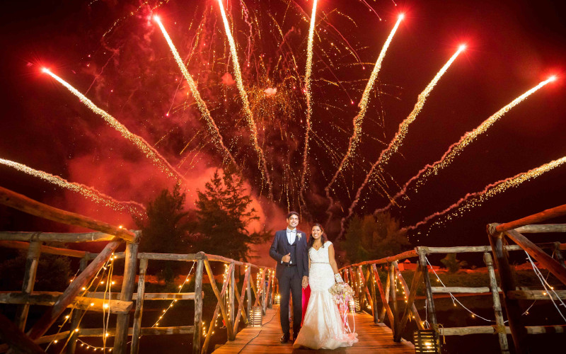 Cold pyrotechnics as you walk in hand-in-hand.