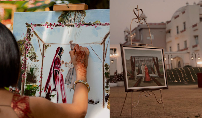 Live painters capturing the wedding ceremony on canvas.