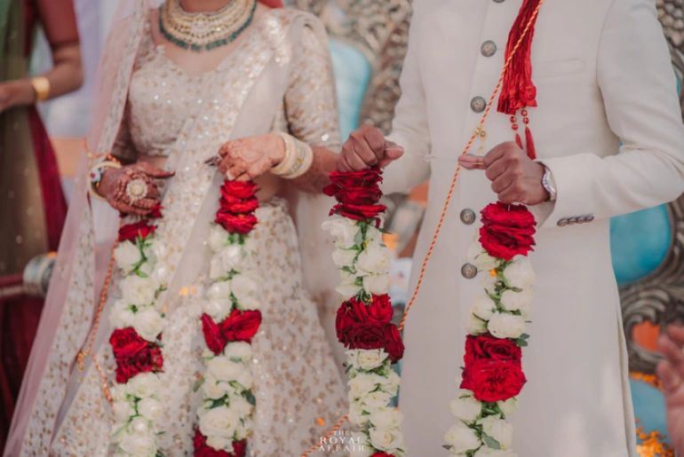 Credits: The Royal AffairExchange of wedding garlands is a romantic moment. Adorable message(s) for each other can be written and attached to each other's garland, which the companion can read and cherish after the exchange of garlands.