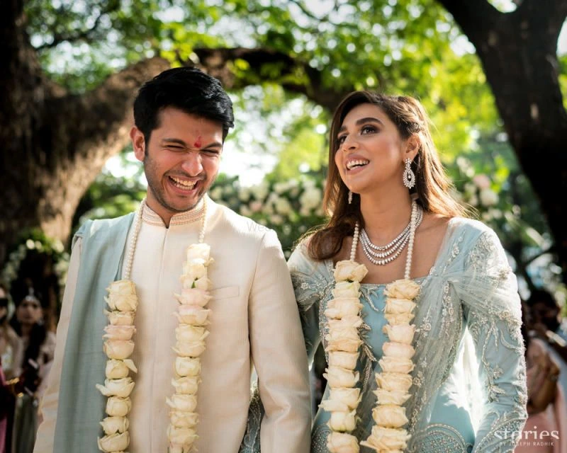 Credits: StoriesWhite represents purity and innocence, and hence pure white garlands work well for the perfectionist couple. The couple donning these white garlands will look like the cream-of-the-crop so pick-out ones with white roses or daisies.