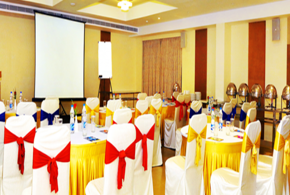 Yes, corporate events, parties and other functions with guests ranging from to 100 can be hosted at Blu Iris. 35 rooms are available at the venue with a provision to arrange more at nearby properties.