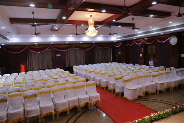 Yes, corporate events, parties and other functions with guests ranging from 300 to 450 can be hosted at Selvi Mahal.
