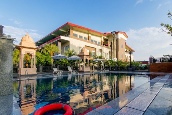 Yes, corporate events, parties and other functions with guests ranging from 200 to 700 can be hosted at Dhauladhar Heights Resort. 75 rooms are available at the venue with a provision to arrange more at nearby properties.
