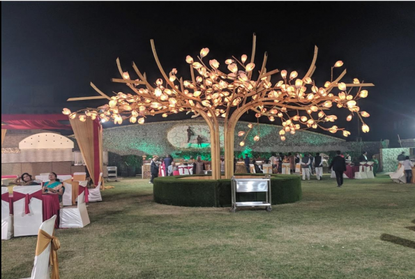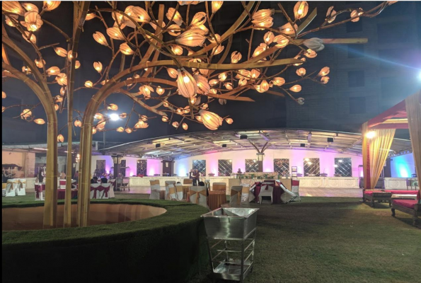 Lawn can accommodate 50 - 600 guest(s) Veg Menu starting price of Lawn is Rs. 900 per plate.