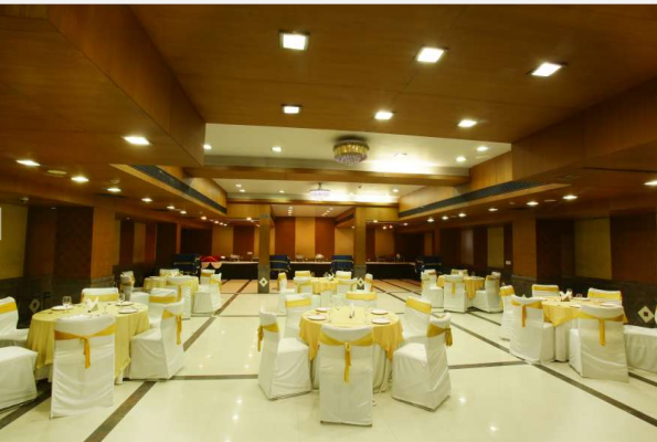 Yes, corporate events, parties and other functions with guests ranging from 100 to 300 can be hosted at Hotel The League. 36 rooms are available at the venue with a provision to arrange more at nearby properties.
