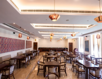 The hall features contemporary interiors with sophisticated lighting and tasteful decor, creating a warm and inviting atmosphere. Its spacious layout allows for flexible seating arrangements, catering to both intimate gatherings and larger functions.
