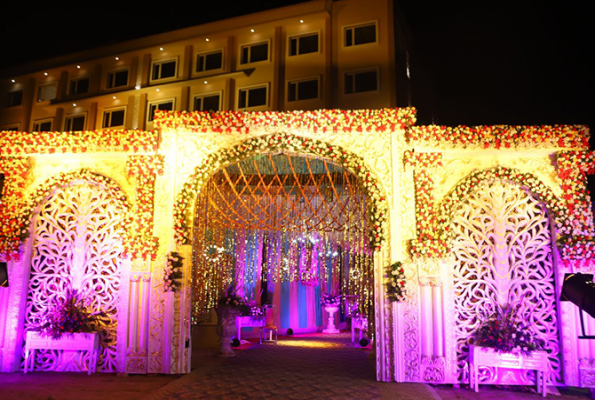 Yes, corporate events, parties and other functions with guests ranging from 100 to 1500 can be hosted at Hotel Royal Vrindaban.